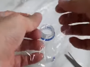 랩을 씌운 페트병 입구에 초파리가 들어갈 수 있도록 랩을 가위로 살짝 잘라주세요.