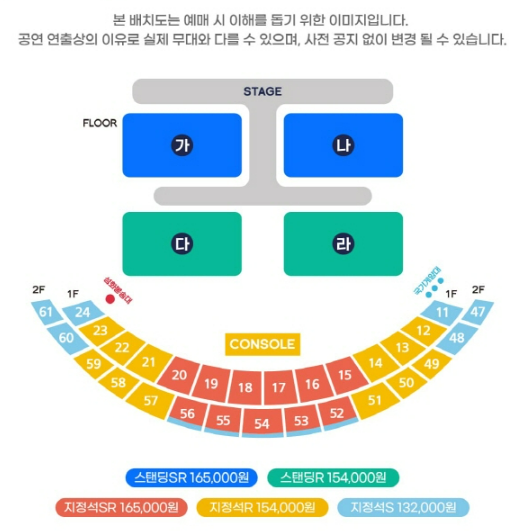 - 지정석 SR석 165,000원 지정석 R석 154,000원 지정석 S석 132,000원