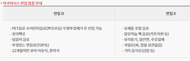 PET음료, 종이백, 텀블러음료, 뚜껑있는 캔음료, 12개월미만 유아이유식 환자식 반입 가능합니다.